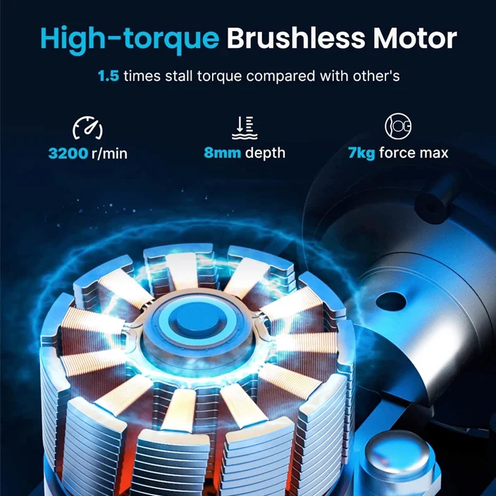بهترین مینی گان ماساژ عضلانی برای استفاده روزانه و سفر با گشتاور (قدرت چرخشی) بالا که 1.5 برابر قویتر از مینی گانهای ماساژ مشابه در بازار است.