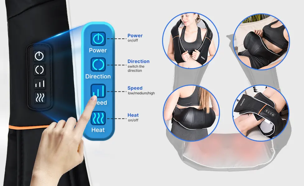 8rotation massage nodes work wonders to relieve aches, knots and muscle tension, providing you a deep kneading shiatsu massage experience.